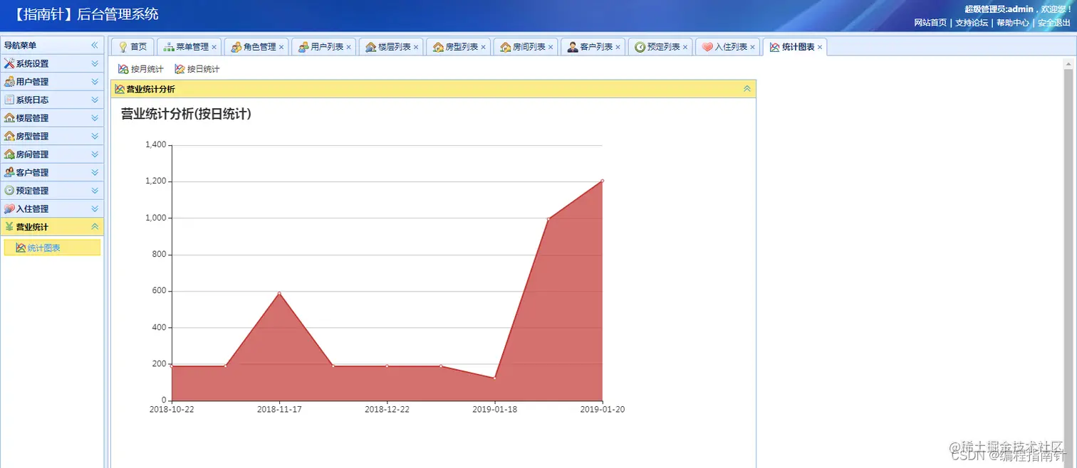 本项目主要基于SSM框架开发实现了一个酒店预定入住管理系统,前端用户可以实现注册登陆,并在前端页面进行全文检索,预定需要的酒店。在个人中心处可以查看自己预定的酒店信息,管理个人信息等。后台管理人员登陆系统后可以进行用户和权限角色的管理和分配,酒店信息的管理,预定信息的管理,入住信息的管理,营业报表的图形统计功能等等。