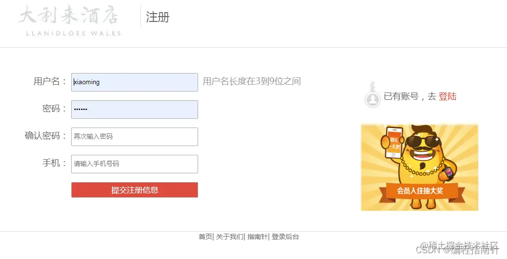 * 注册信息提交