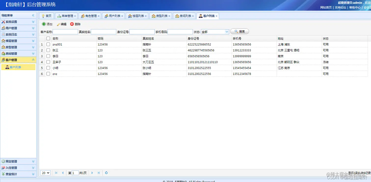 * 客户管理列表页面
