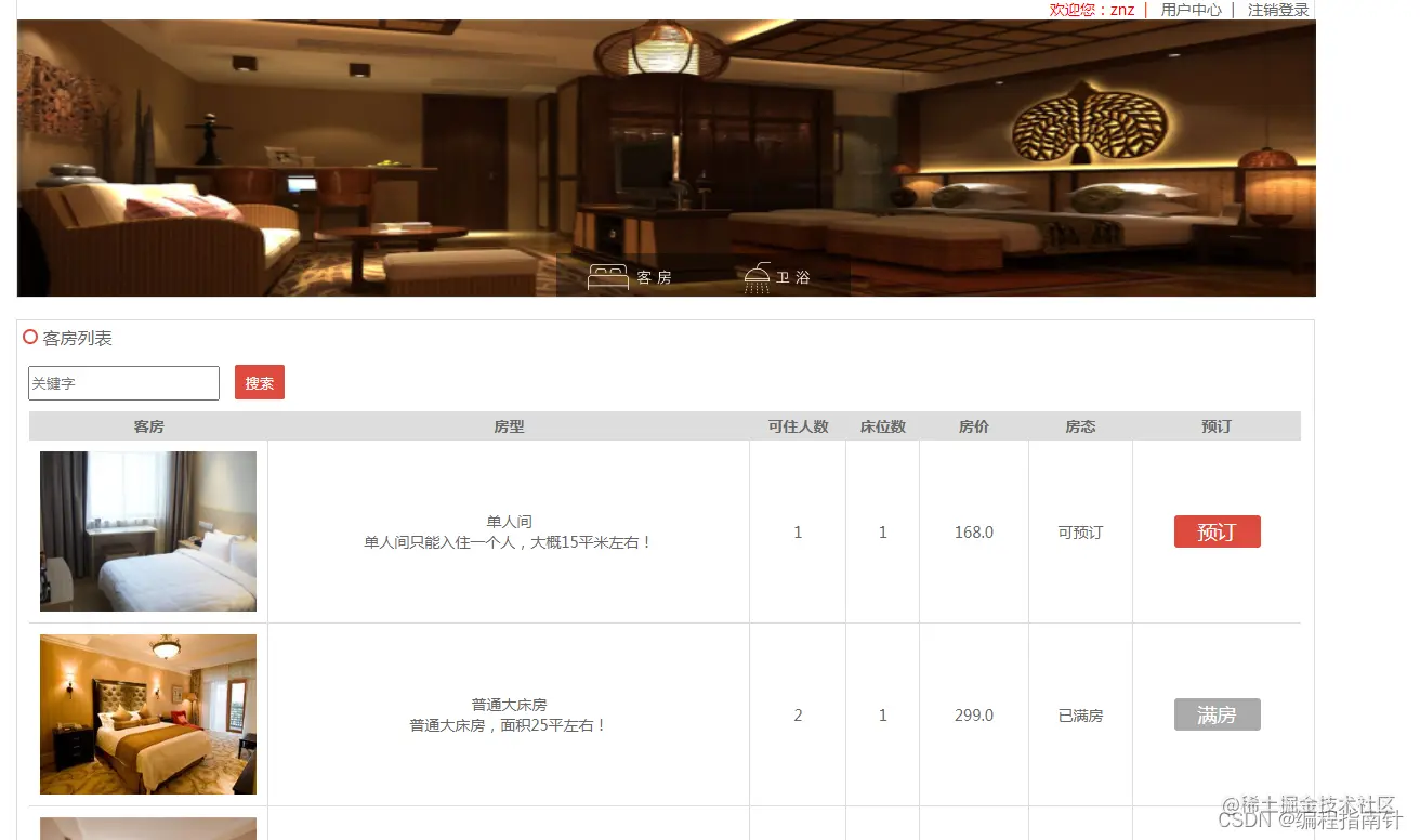 * 预定房间页面