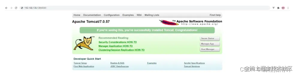 前面我们已经通过日志的方式及查看系统进程的方式,验证了Tomcat服务已经正常启动,接下来我们就可以尝试访问一下。