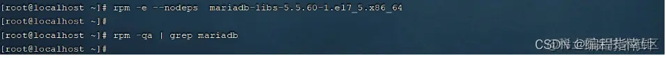 rpm -qa | grep mariadb 查询当前系统中安装的名称带mariadb的软件