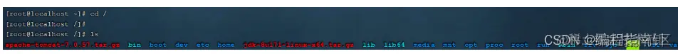 由于上述在进行文件上传时,选择的上传目录为根目录 /,上传完毕后,我们执行指令 cd / 切换到根目录下,查看上传的安装包。