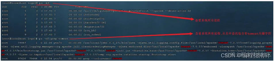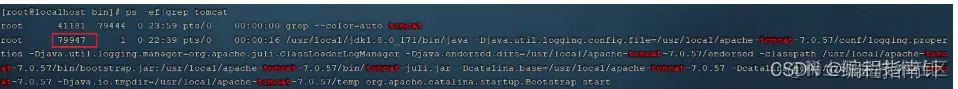 我们也可以通过Linux系统的查看系统进程的指令,来判定Tomcat进程是否存在,从而判定Tomcat是否启动。执行如下指令:
