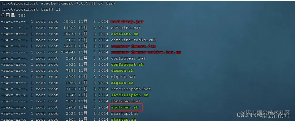 #切换到bin目录 cd /usr/local/apache-tomcat-7.0.57/bin