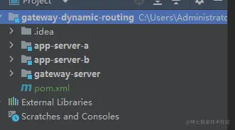 app-server-a、app-server-b 为测试服务,gateway-server为网关服务。