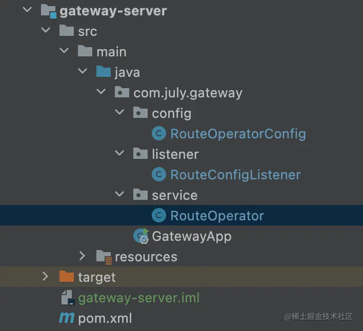 RouteOperator类,用来删除和增加gateway进程内的路由; - 创建一个配置类