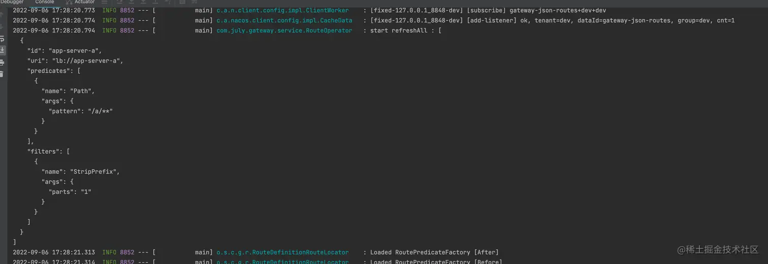我们启动网关可以看到正常拉去到配置信息: