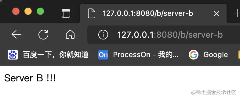 我们在浏览器中访问:127.0.0.1:8080/b/server-b