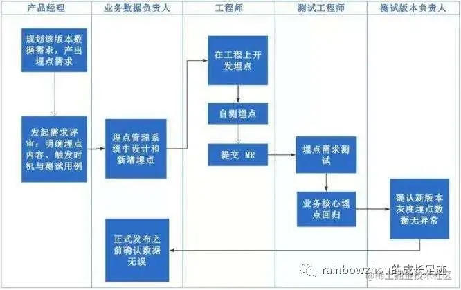 大家好,我是rainbowzhou。在【rainbowzhou 面试3/101】技术提问--大数据测试是什么,你如何测?中,我介绍了大数据系统测试之功能测试,含对数据的采集和传输,存储和管理,数据计算,数据查询和分析以及数据可视化等功能的测试。本篇的埋点测试便是其中功能测试的一部分。本篇将聊聊埋点测试是什么、埋点测试的流程以及埋点测试需要注意的点,希望对大家有所帮助。