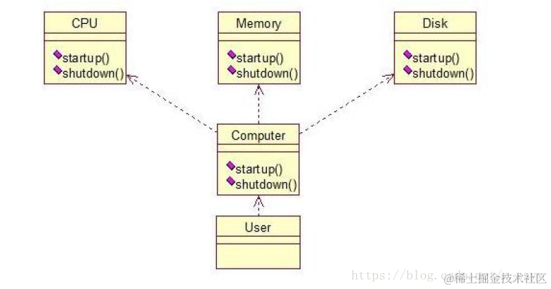 如果我们没有Computer 类,那么,CPU、Memory、Disk 他们之间将会相互持有实例,产生关系,这