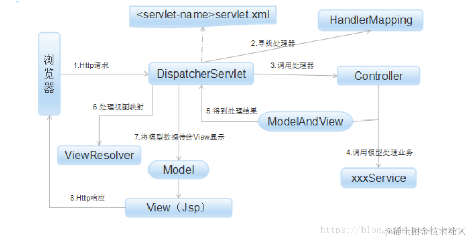 下图展示了Spring Web MVC的DispatcherServlet处理请求的工作流。熟悉