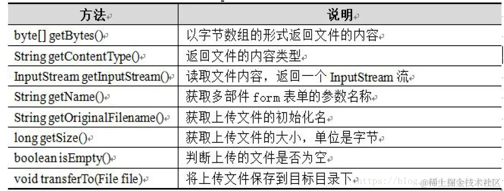 org.springframework.web.multipart.MultipartFile接口中提供了获取上传