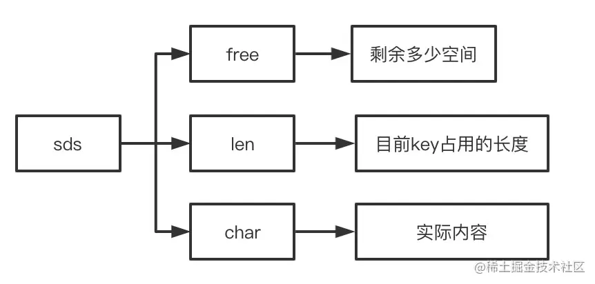 Redis键:虽然有字符串、整型和浮点型,实际所有键都是字符串类型(sds---simple dynamic string),并且键是唯一的。好处:二进制安全的数据结构(兼容了不同语言的数据);提供了内存预分配机制,避免了频繁的内存分配;兼容C语言的函数库。图解如下: