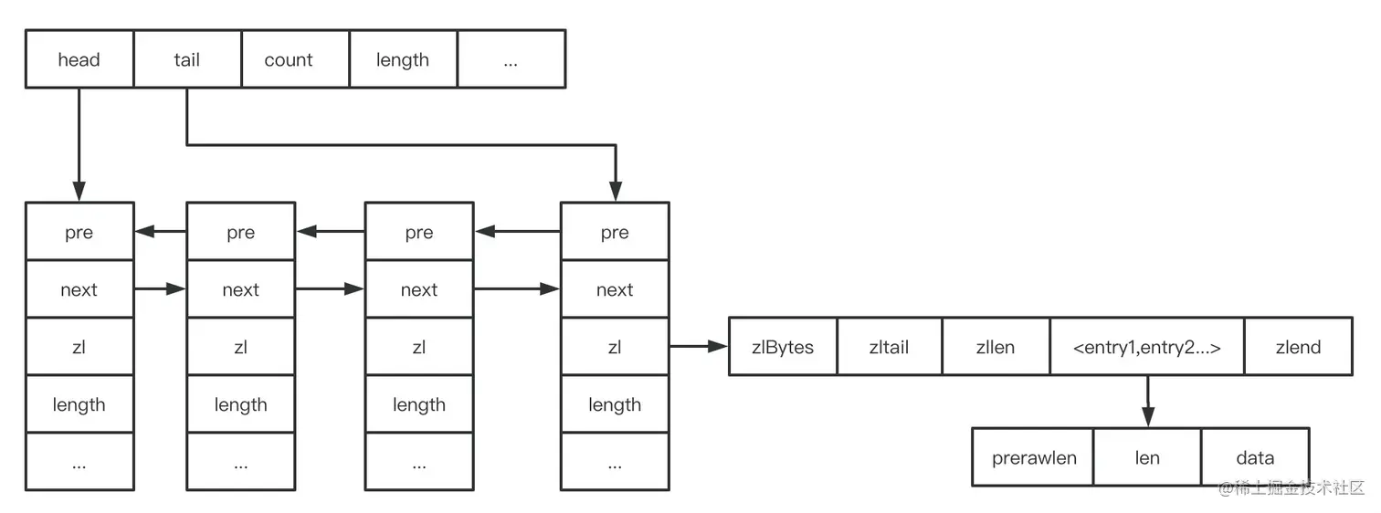 | Hash | 数据结构底层实现为一个字典(dict),也是RedisBb用来存储K-V的数据结构 | ziplist | hashtable | hash-max-ziplist-entries 512hash-max-ziplist-value 64 |
