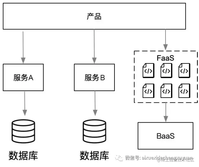 2)BaaS(Backend as a Service,后端即服务): 可以用来替换应用程序中的一些核心能力,且直接通过 API 的方式提供的第三方服务。由于这些服务自身实现了自动扩容/缩容的能力,因此开发者无须了解与服务器相关的信息。例如 GitHub Pages、CDN、OSS、RDS、MQS 都属于 BaaS。