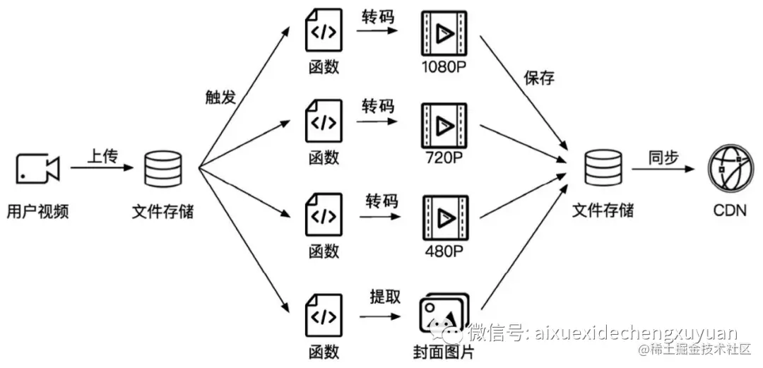 基于 Serverless 的视频转码服务架构: