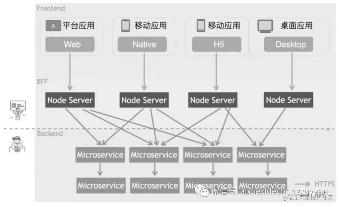 BFF: Backend For Frontend,服务于前端的后端。