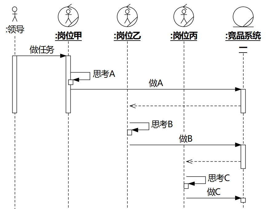 从图3可以看出,岗位甲乙丙的责任已被转移到竞品系统二里面。你说啥?为什么还要岗位甲,领导干嘛不直接用系统做任务?你说呢?