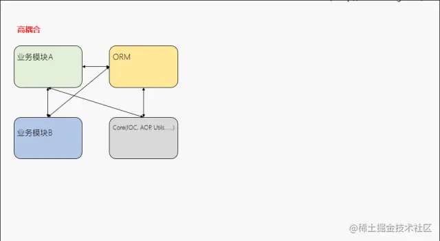 耦合是指你每一个模块之间的依赖性,一个项目可以分为多个模块,按照