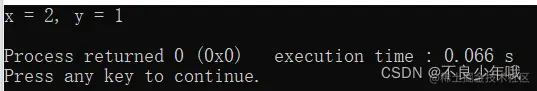 printf("x = %d, y = %d\n", x, y);