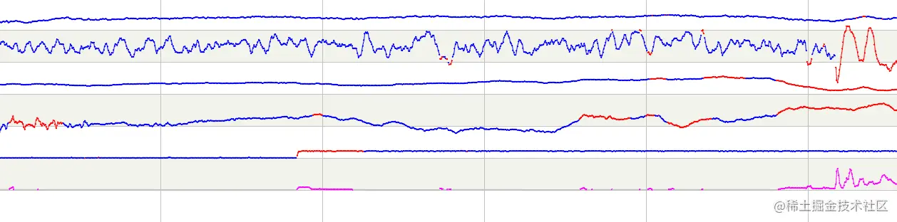 这里有五个仪表的曲线,红色部分为该仪表异常的部分。