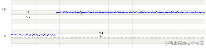 左侧平稳期和右侧平稳期都是正常状态,如果左侧出现点1,右侧出现点2,它们都应该被判定为异常点,但如果简单的用固定范围来判断,这两个点都在固定范围内(图中的上下限),判断就会出错,所以需要动态的去判断某个点是否异常。