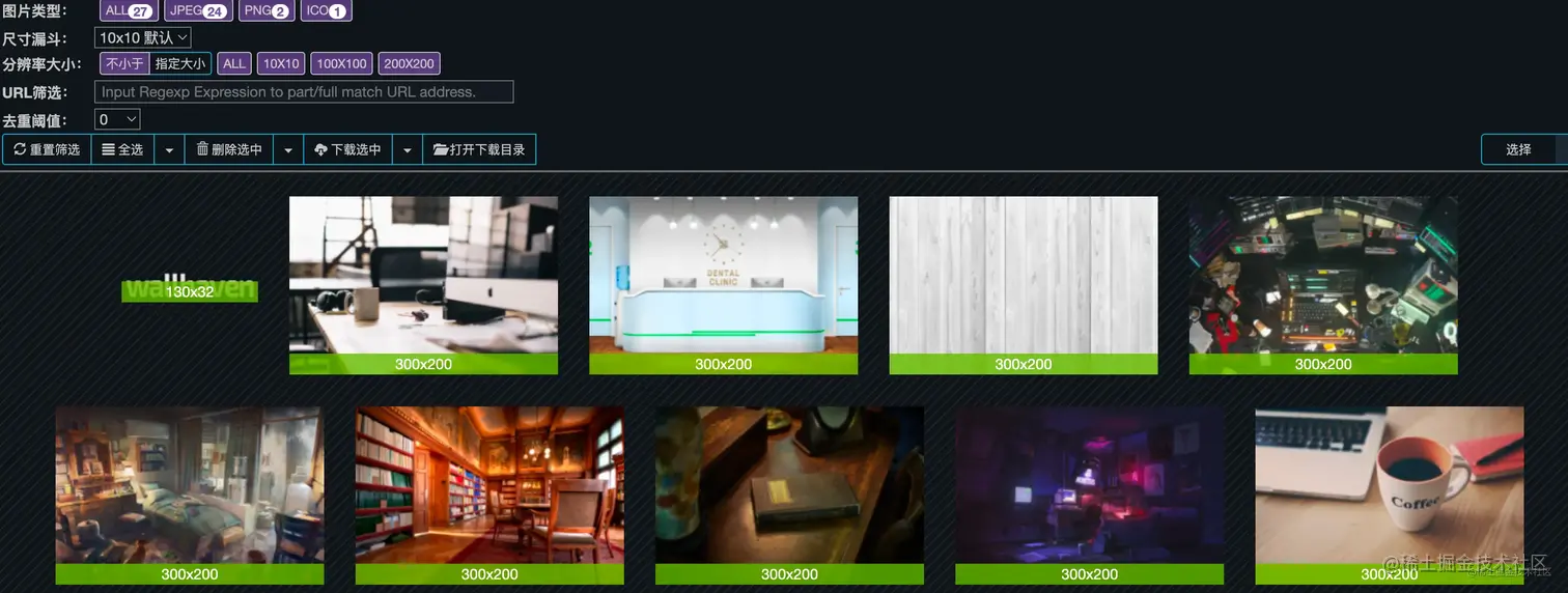 - 不仅如此,还可以设置你想要的尺寸,会自动帮你筛选出符合尺寸大小的图片,甚至还可以批量保存。