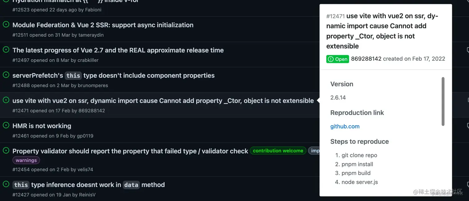 hover到作者名称、issues上就可以立马了解到对应的信息,这对于我这种经常翻issues的人来说简直是神器,可以马上筛选到我想要找的资料。