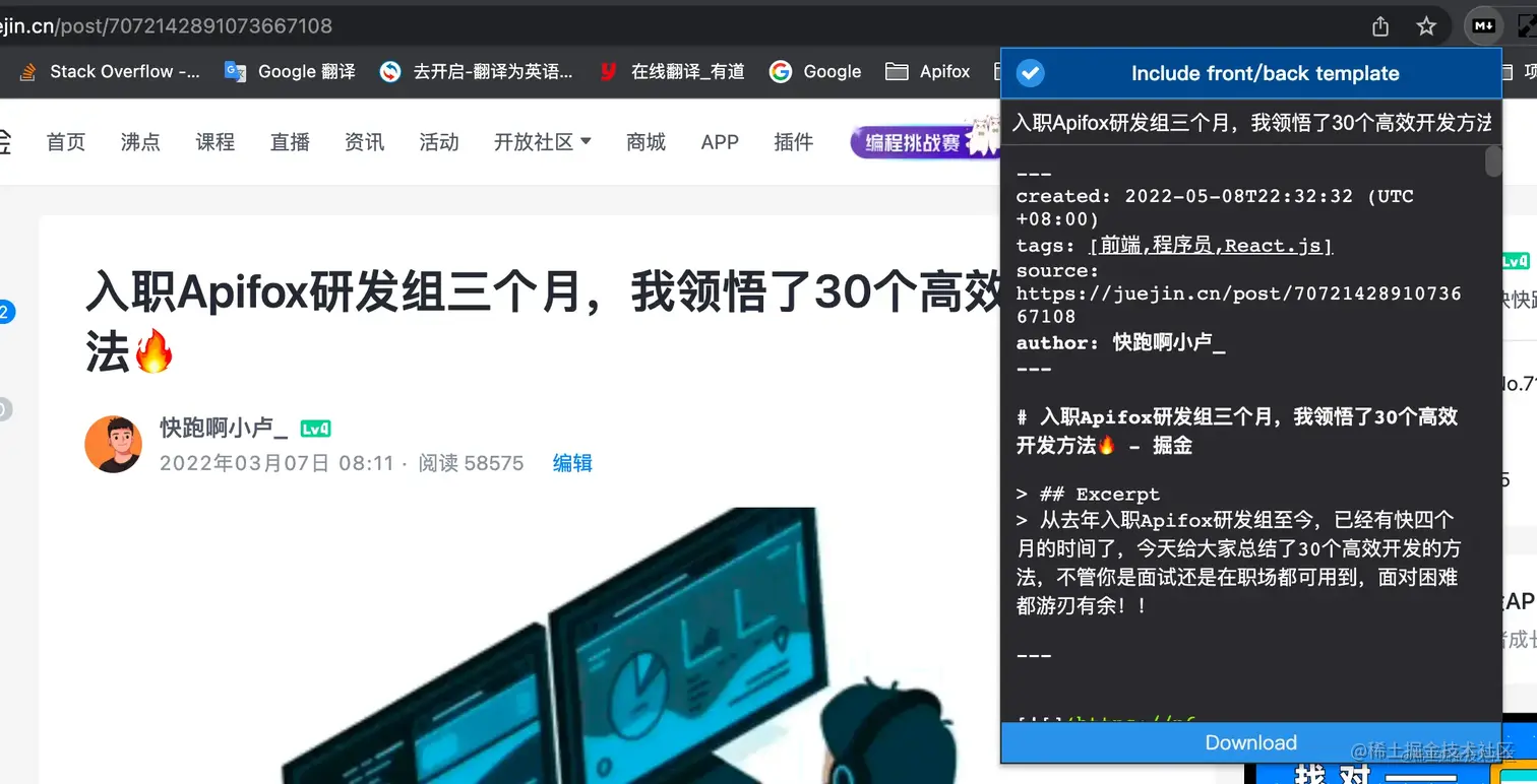 Markdown你肯定不陌生,在看到一篇好的文章想要转载或者记录到本地的时候,使用这个插件可以让你快速保存Markdown。 - 你只需要打开你想要下载的