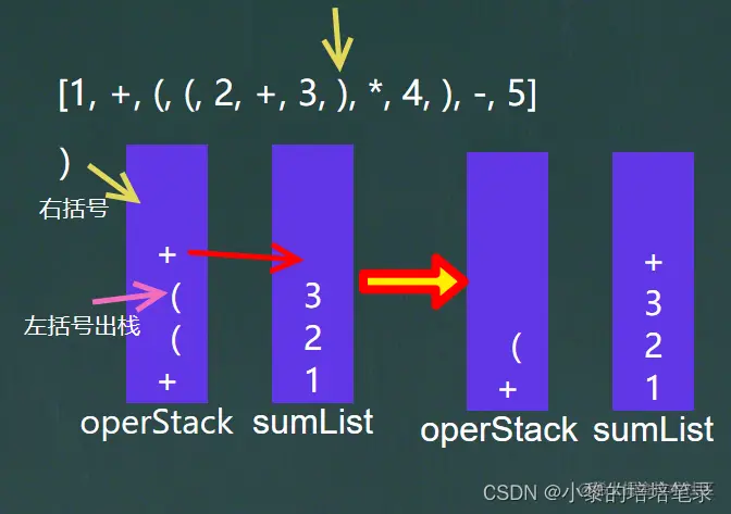 sumList.add(operStack.pop());//不是左括号,就将栈顶的符号依次放入集合