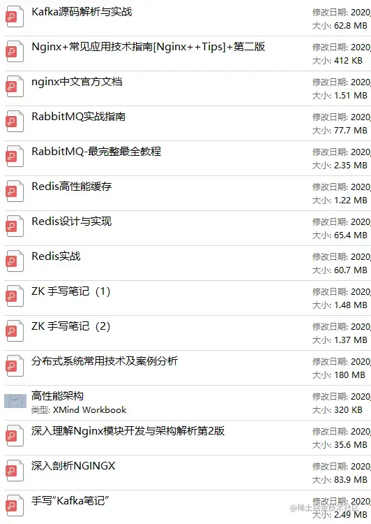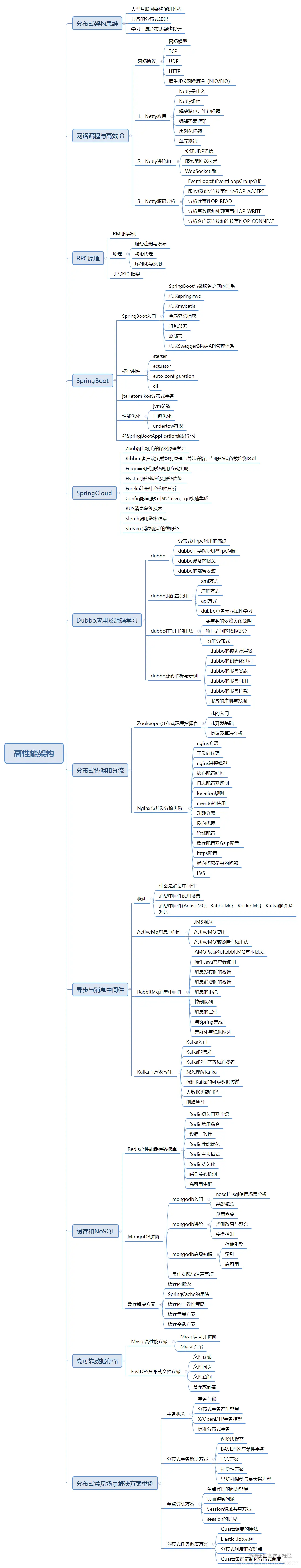 说明:以下全部所说的架构师必备技能之高性能架构学习路线及相关笔记:中间件、Nginx、缓存、ZK等等等,篇幅有限,很多都是截图展示,但是图片都是很高清的,可以清晰的看见其中的内容。