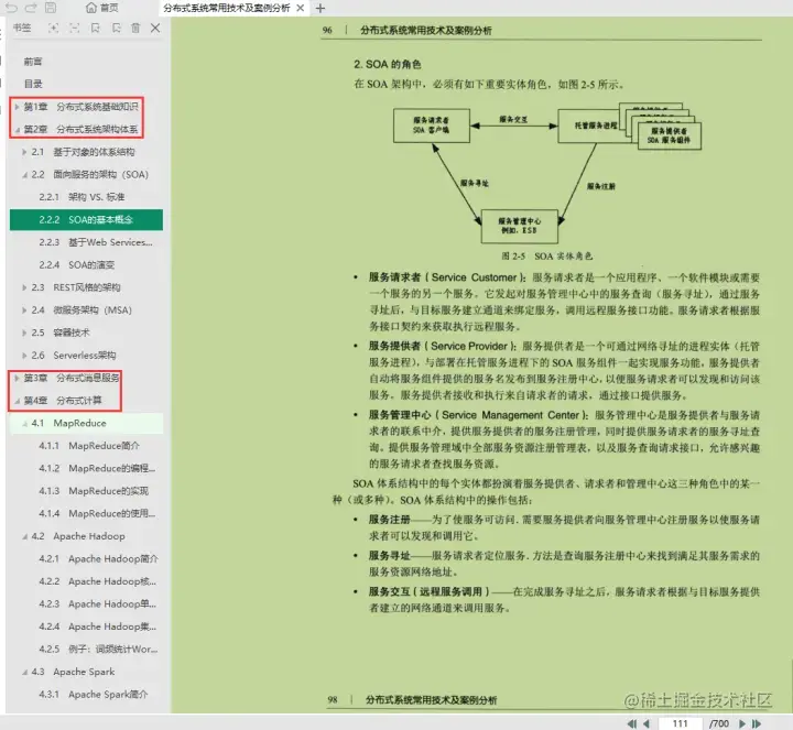 - 第二部分主要列举了在分布式系统应用中经常用到的一些主流技术,并介绍这些技术的作用和用法;这些技术涵盖了分布式消息服务、分布式计算、分布式存储、分布式监控系统、分布式版本控制、RESTful、微服务、容器等领域的内容。