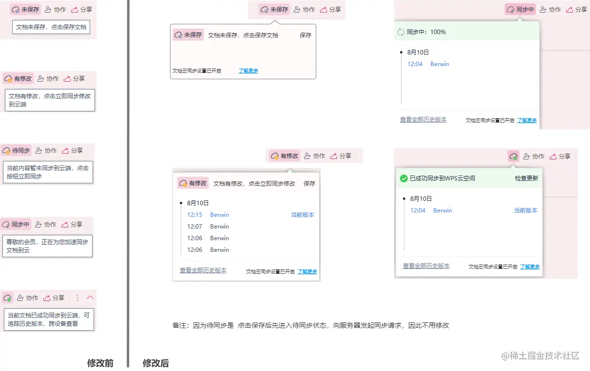 分析:云的状态有——未保存、有修改、待同步、同步中、已成功同步到WPS云空间。