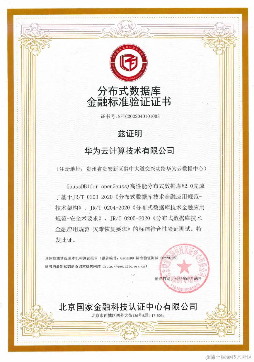 近日,北京国家金融科技认证中心正式公布了2022年通过“分布式数据库金融标准验证”的数据库产品名单。华为云GaussDB金融级分布式数据库以突出的技术优势通过验证,跃然榜上,且测试得分遥居前列。