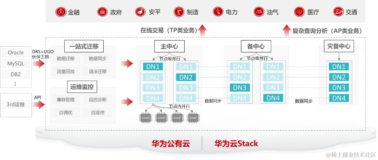 当前,华为云GaussDB已经广泛应用于2500+大客户的核心业务中,遍布金融、政府、电信、能源、交通、物流、电商等诸多行业,并已在工商银行、邮政储蓄银行等五家国有金融大行、多家股份制银行和保险证券公司中都积累了非常成功的实践经验。华为云GaussDB不仅携手工商银行完成核心交易系统传统数据库信息技术应用创新转型,实现高可用、性能线性扩展和弹性部署,形成一套普遍适用的传统数据库平滑迁移一体化解决方案;还成功助力邮储银行新一代个人业务分布式核心系统全面投产上线,使邮储银行科技金融再添一部新引擎。