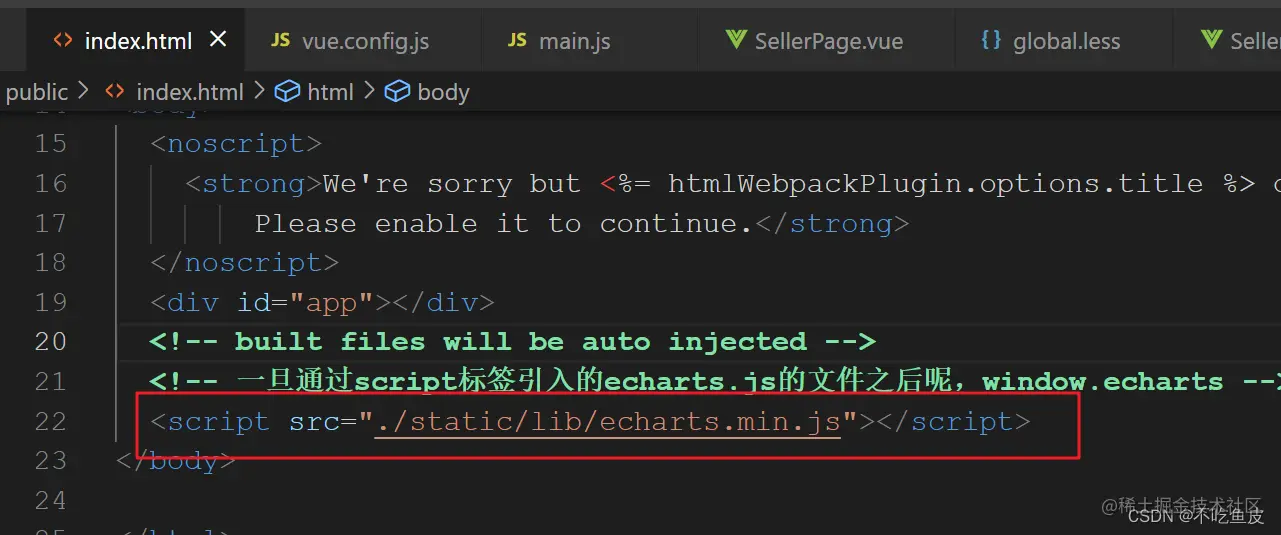 在vue项目的public目录下新建一个lib文件夹,并将echarts.min.js放在改路径下