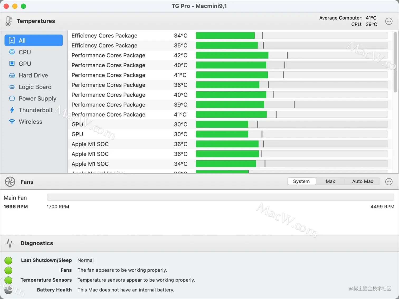 现代的Mac电脑有大量的电源传感器来检测问题和管理风扇转速,M1 Mac mini上使用一个工具计算出有34个。这些传感器可以通过正确的知识或软件进行监控。