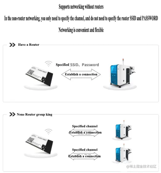 L Support wireless router networking: You only need to specify the channel, do not need to specify the router SSID, Password, more convenient networking;