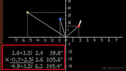 - 举个例子,比如被转动向量p=2+0i,旋转角度为