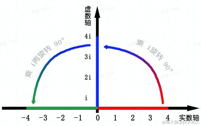 那么可得:4∗i∗i=−4,其物理意义就是4在数轴上旋转了180度。