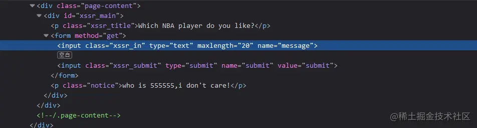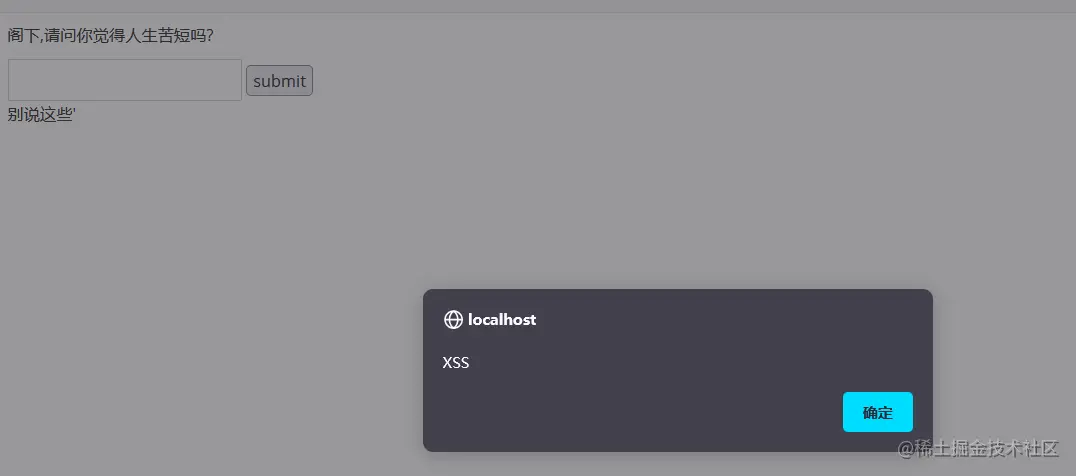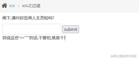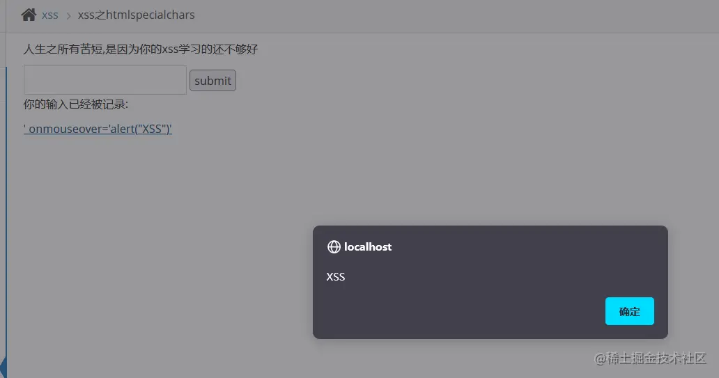 形成XSS漏洞的主要原因是程序对输入和输出没有做合适的处理,导致“精心构造”的字符输出在前端时被浏览器当作有效代码解析执行从而产生危害。