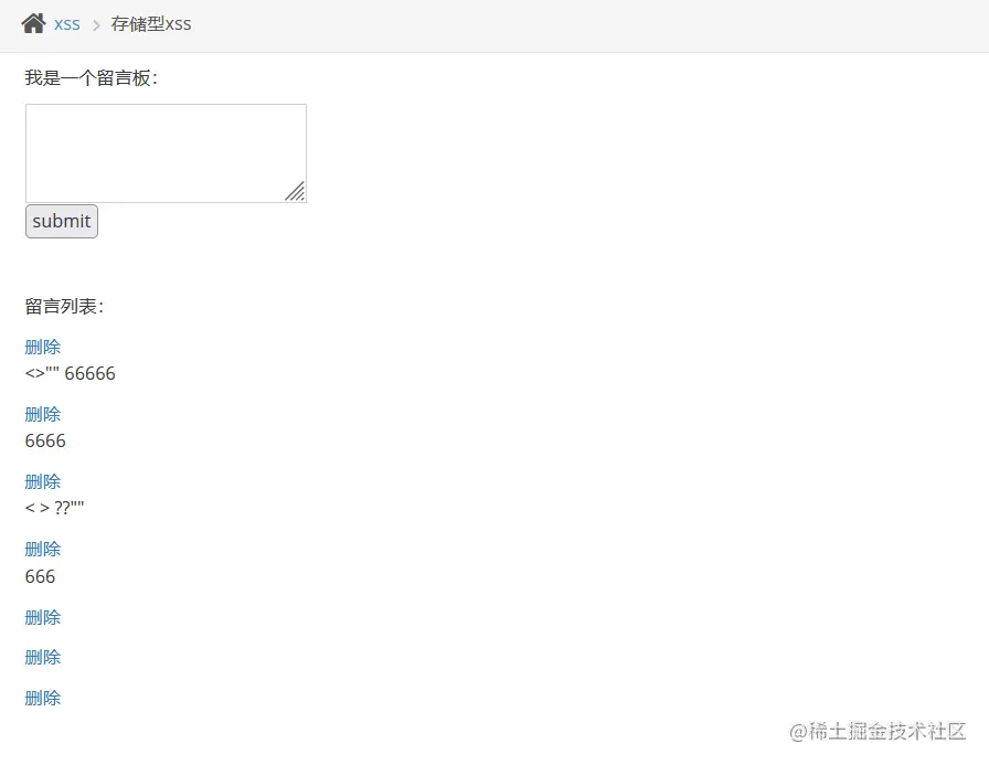 1、打开页面,发现是留言框,典型的存储型xss可能存在的场景,输入留言,测试特殊字符,发现没有没过滤
