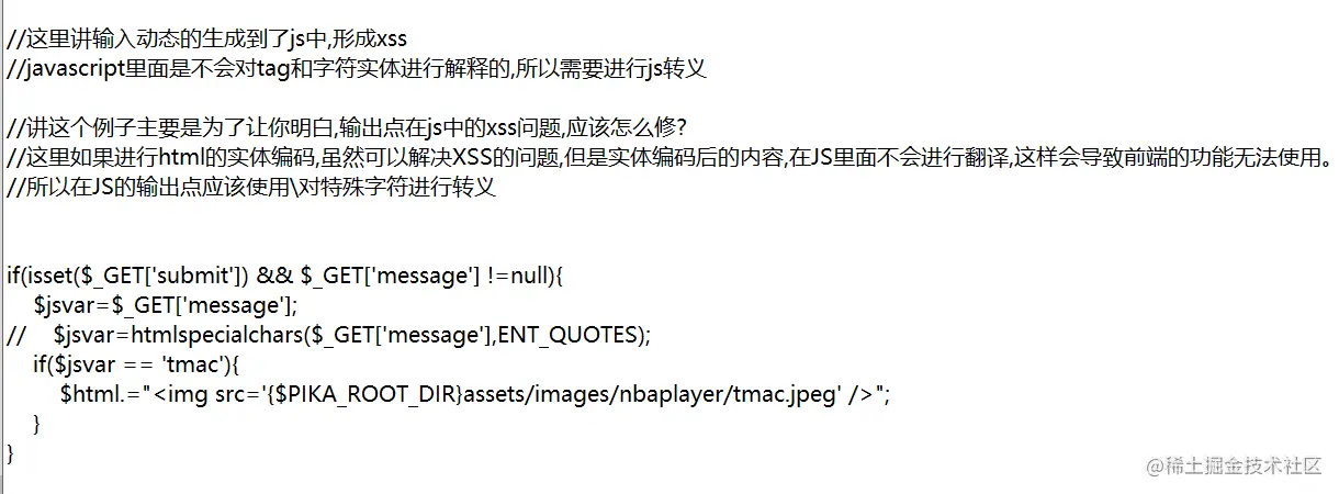 因此在XSS漏洞的防范上,一般会采用“对输入进行过滤”和“输出进行转义”的方式进行处理: