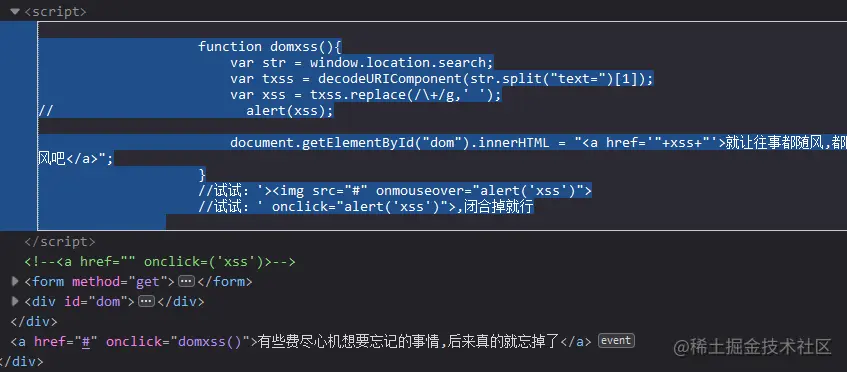 第一次点击跳转到domxss()函数