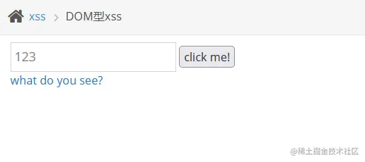 4、提交测试代码,点击 what do you see?执行测试代码,产生弹窗,和反射型xss差不多