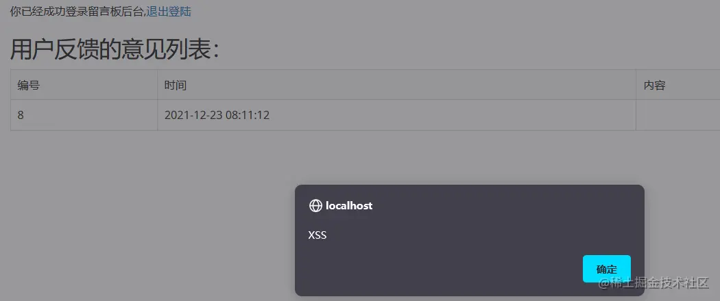 3、并且弹窗脚本被嵌入p标签中并被成功执行