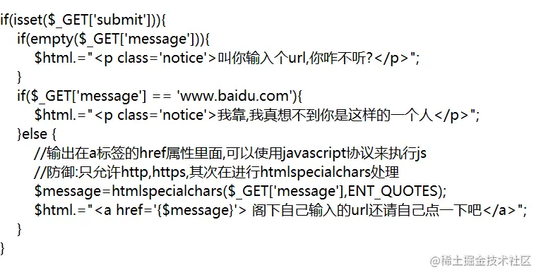 "what do you see?"; 代码的意思为将输入的str拼接到href属性,本来href指向一个url,但是如果将