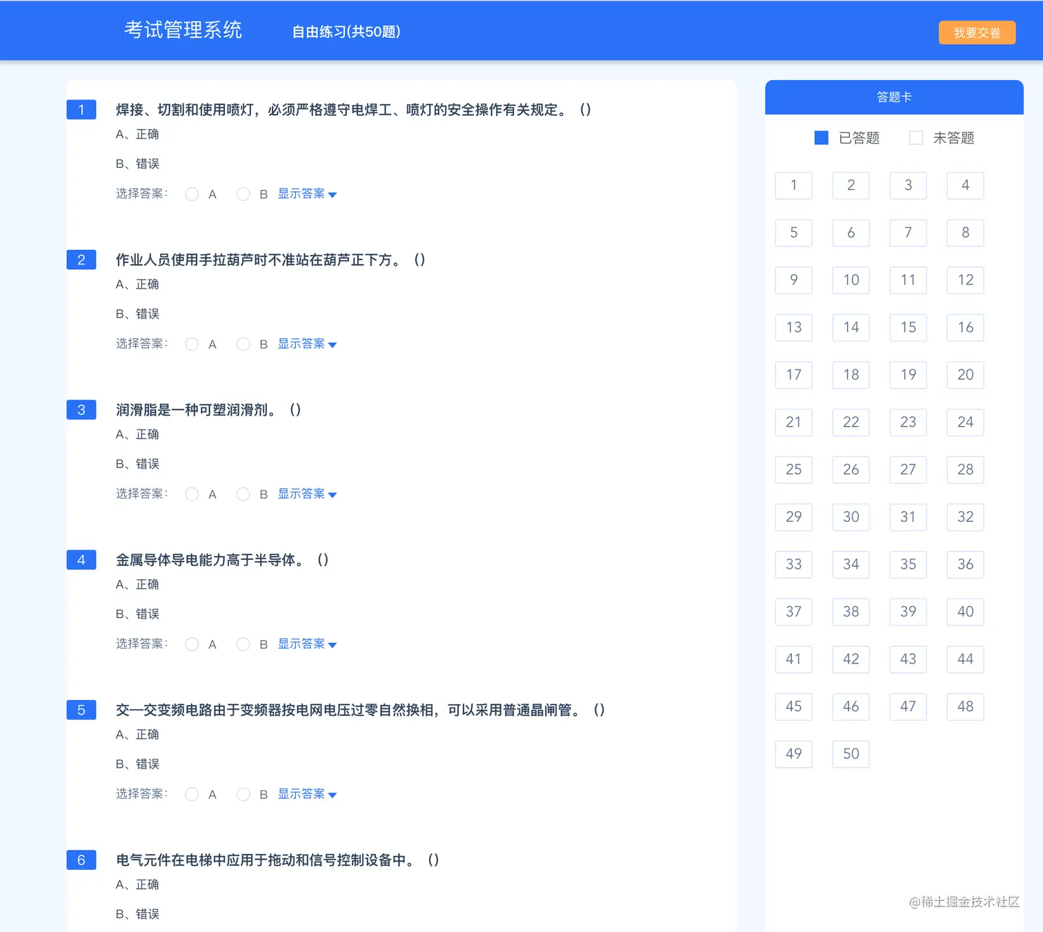 试题考试页面