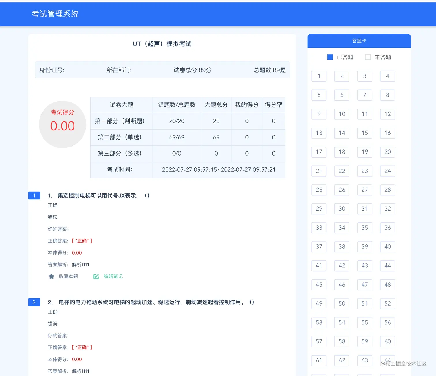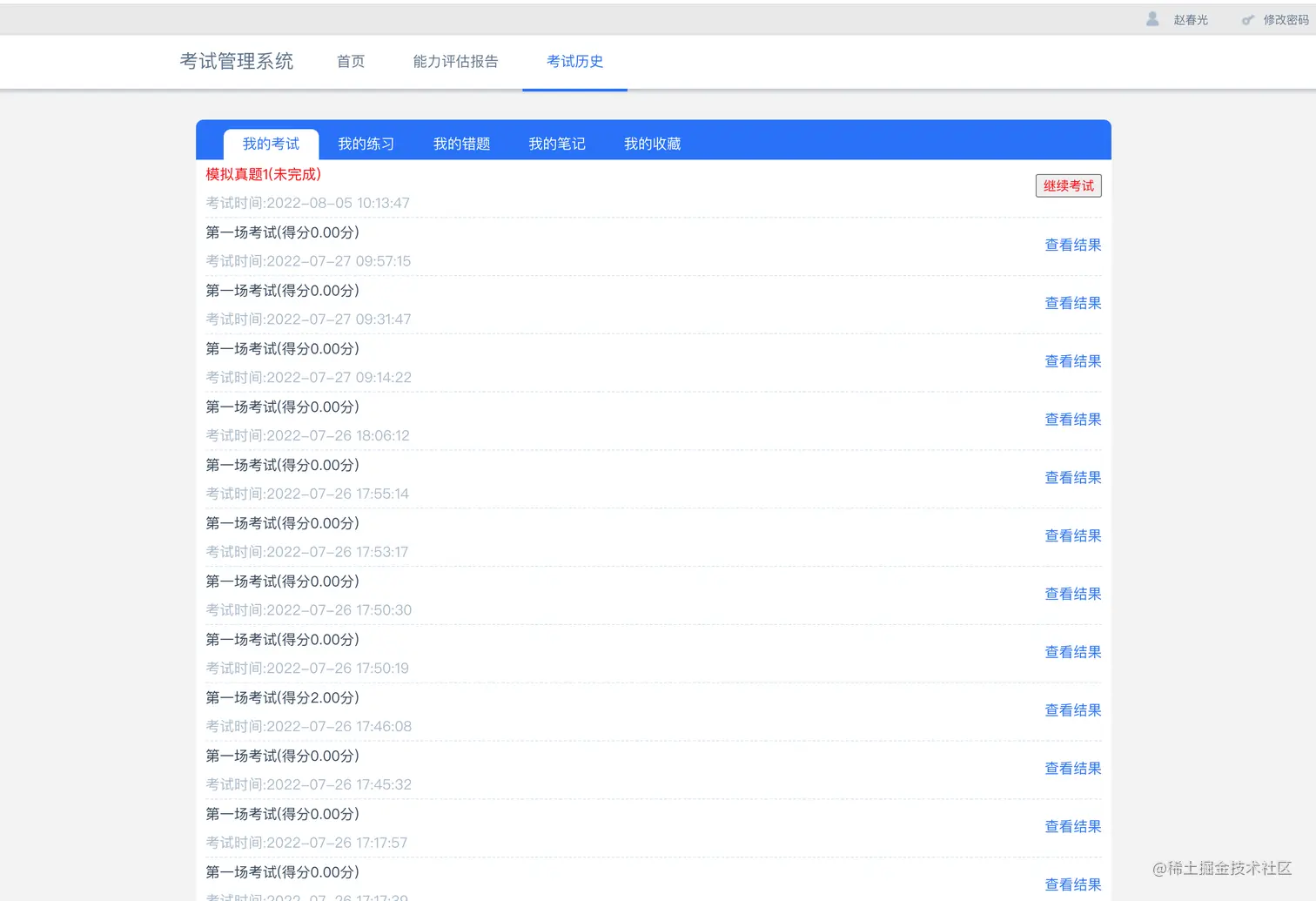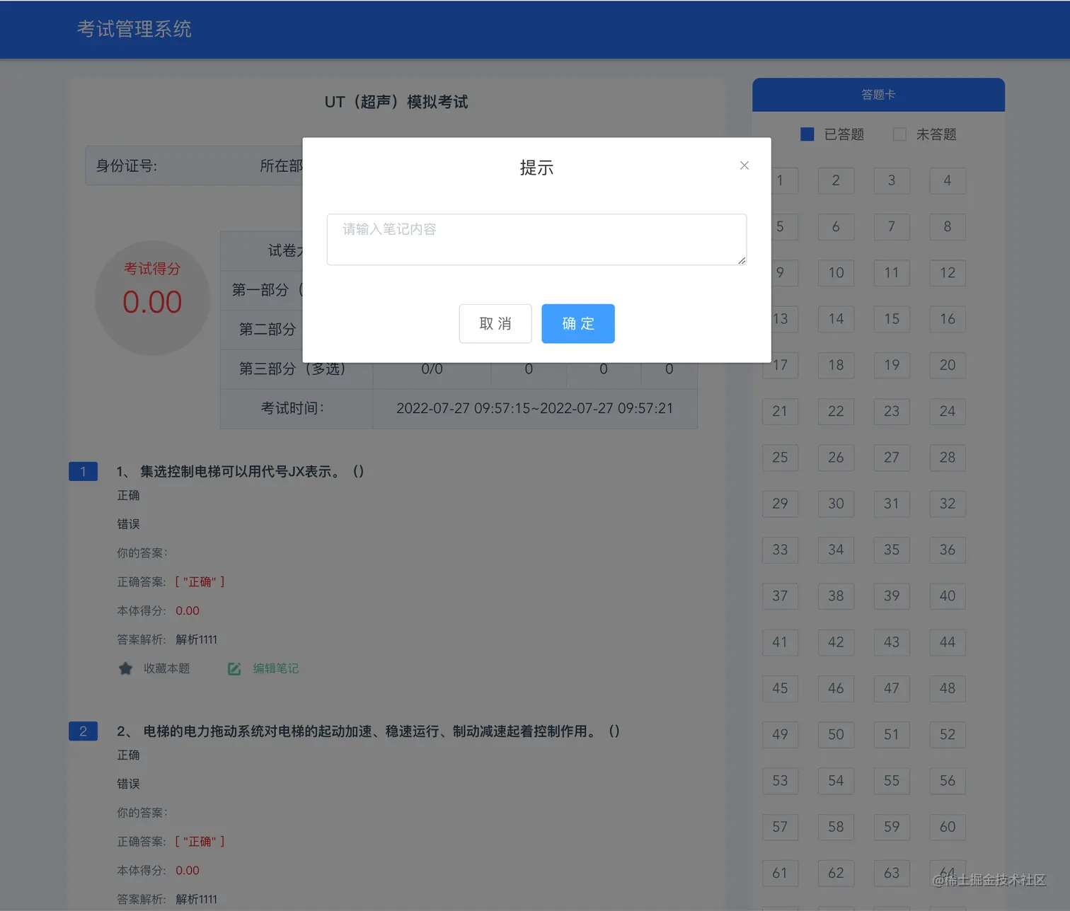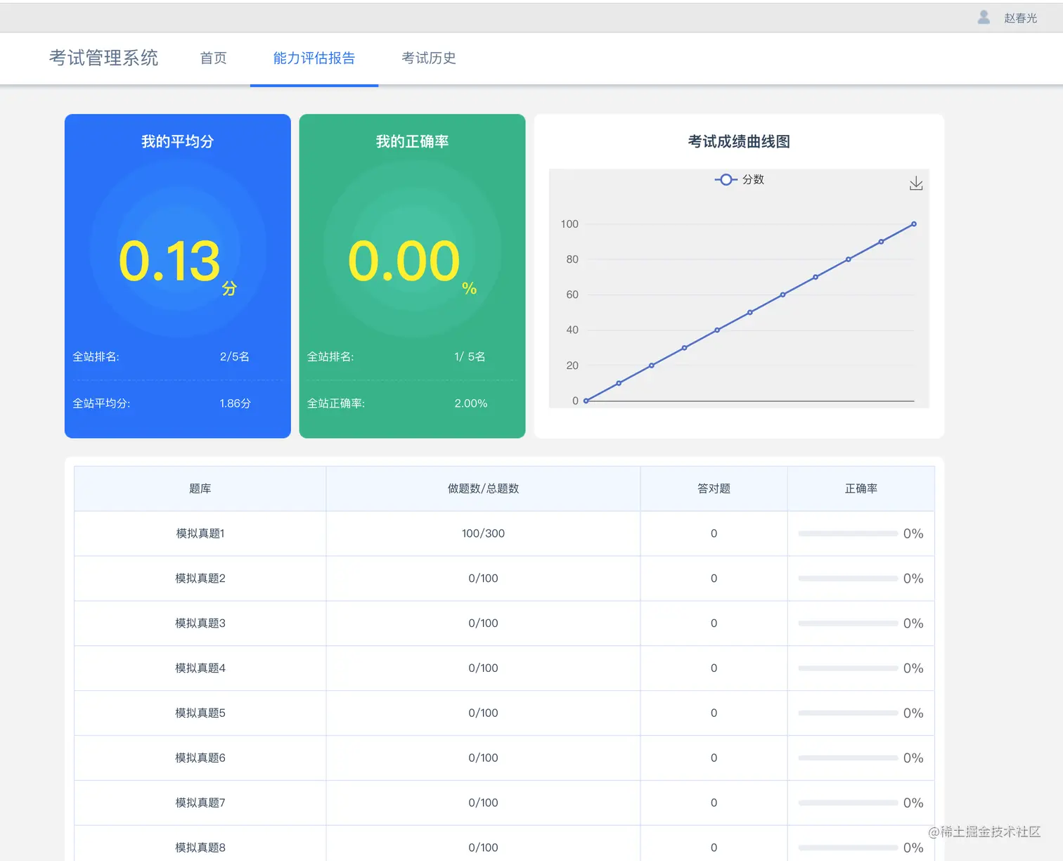 考试能力评估页面